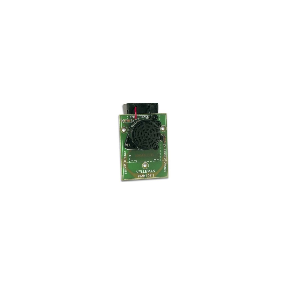Inicia um som de alarme quando a água é detectada. Campainha de alarme incorporada. O sensor de água pode ser colocado a uma distância pelo corte da placa e utilização de fios para ligar o sensor.