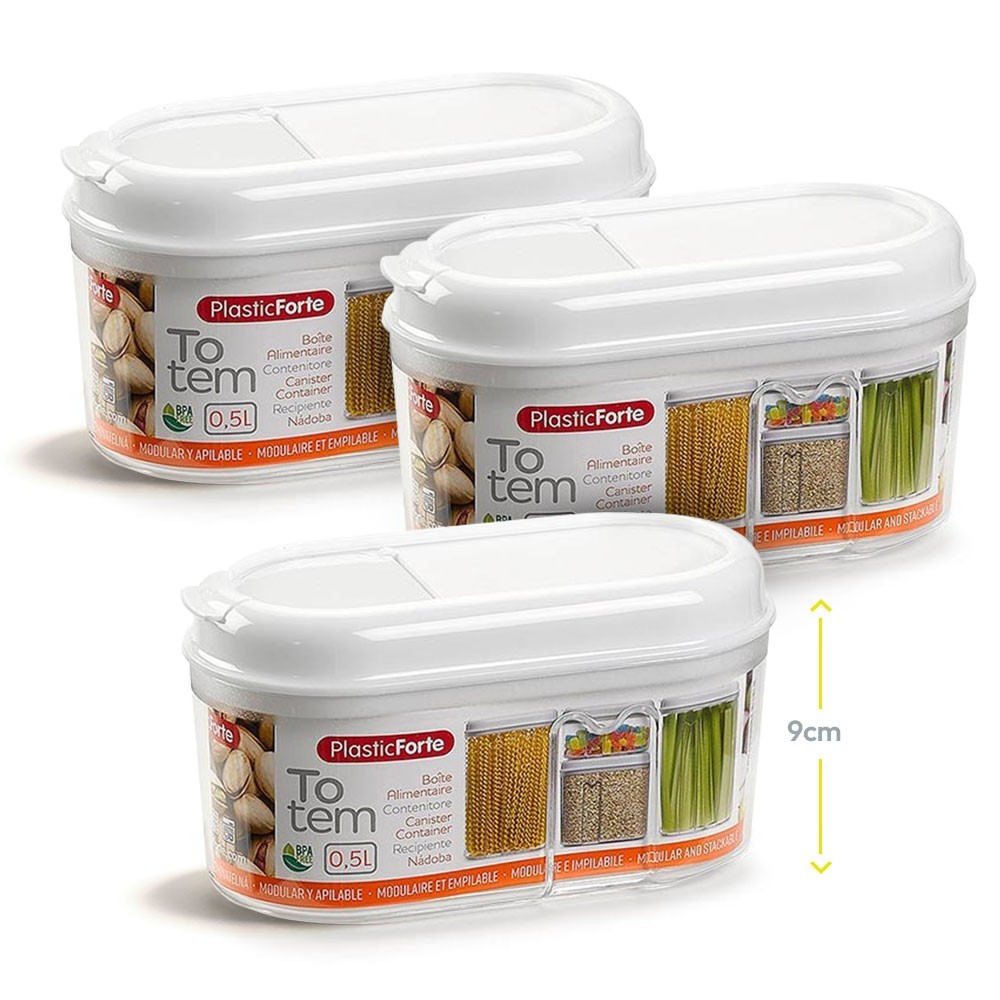 Medidas Exteriores: 8 x 15,5 x 9cmCaixa Multiusos 500ml Plástico c/Tampa Totem Branco 3un