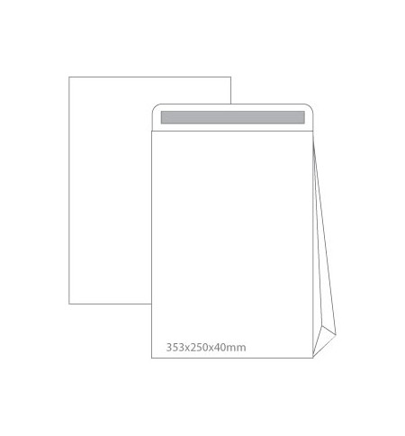 Envelopes Saco 353x250x40 Branco c/Fole Lado/Baixo Branco 90gr Autodex Cx500un fole 4cm