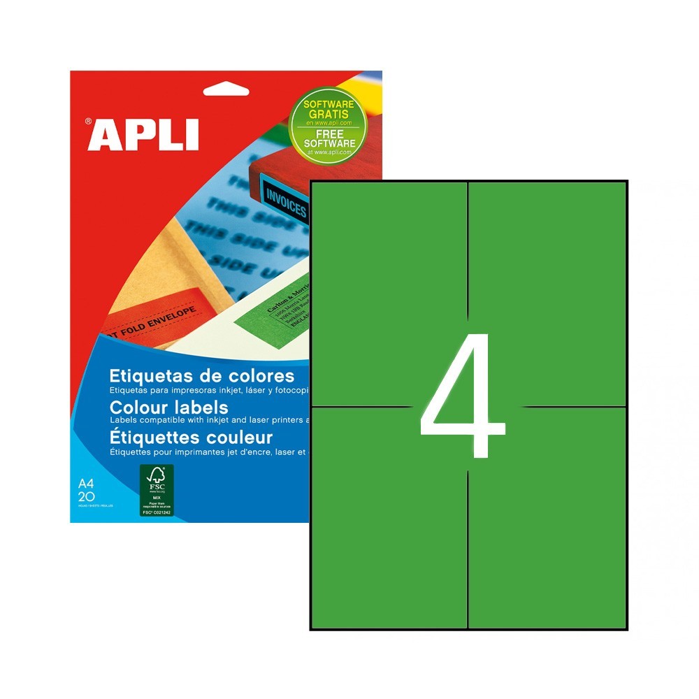 Certificados: FSCEtiquetas 105x148mm 20Fls A4 Verde Apli 80un