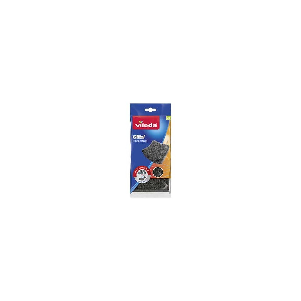 Não deve ser usado em loiças anti aderentes ou superfícies passíveis de ficarem riscadas.Esfregão Inox Vileda Glitzi Power 2un