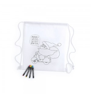 Saco Mochila Infantil de Natal Branca com Lápis de Cera